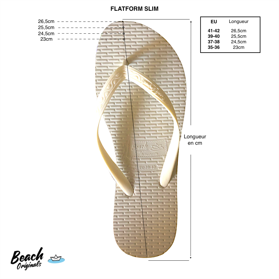 Iconique et vintage, les tongs Beach Originals accompagneront vos pieds bronzés du matin jusque tard dans la nuit pour un look original, chic et décontracté. Et avec vos BO Flatform Slim, prenez de la hauteur !