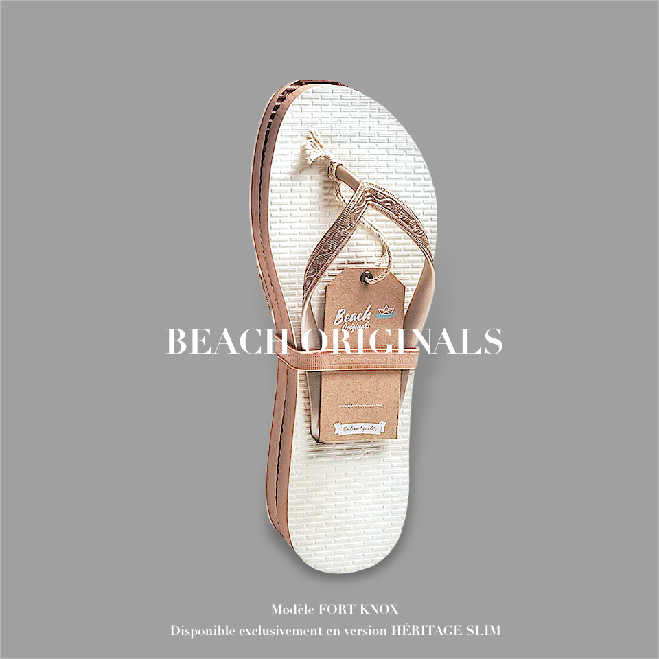 Ré-édition authentiquement inspirée des premiers modèles de tongs en caoutchouc apparus en Californie à la fin des années 50, la tong HÉRITAGE de Beach Originals se porte sur les plages des plus beaux beach clubs du monde, sur le pavé des afterworks Parisiens comme dans les plus belles soirées d’été de la Côte d’Azur ou de la Côte Ouest Californienne.